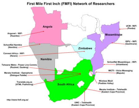 Basic access to communication and information services remains an obstacle to the economic development of low-density (rural) communities. The aim of the FMFI project is to identify and develop models and technology that will overcome these obstacles. The project will also establish a network of researchers and a community of innovators to research least cost, open source solutions for community projects. A well-managed organisation of a number of sub-projects with various project collaborators in the three different African countries of Angola, Mozambique and South Africa, will constitute the beginnings of the FMFI initiatives.